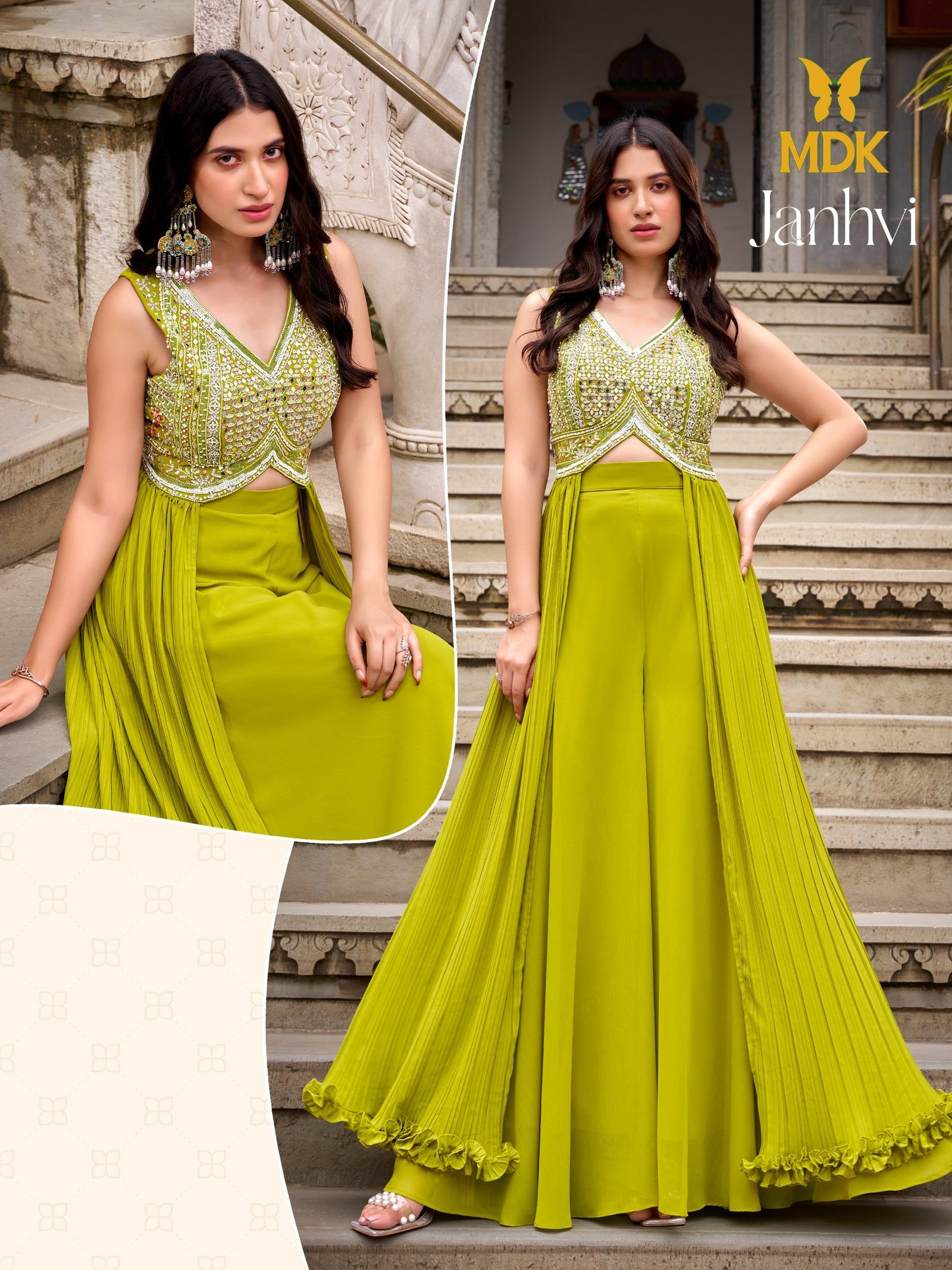 Wide Product Range – Crop plazo, lehenga, gowns, fish cut dresses, ready-to-wear sarees, straight suits, crop tops, and shrug plazo.